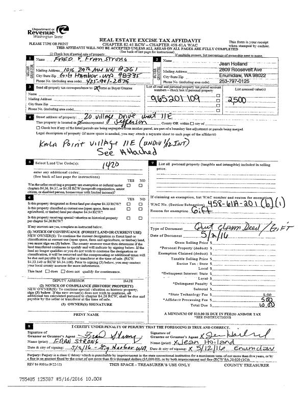| 10 | 04/08/1993 | REC | Real Estate Contract | POPE RESOURCES | STAFFORD, HOWARD G | 0 | 0 | $29,000.00 | 70863 | 0 |