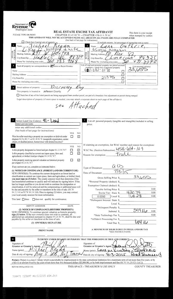 | Mailing Address: | 30 RAEBURN CT PORT LUDLOW, WA 98365-9796 | % Ownership: | 100.0000000000% |