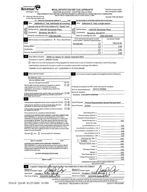 | 1 | 11/10/2020 | SWD | Statutory Warranty Deed | CHARLES KRAUS | EDOUARD & MARGUERITE GALFRE | | | $27,400.00 | 135595 | |