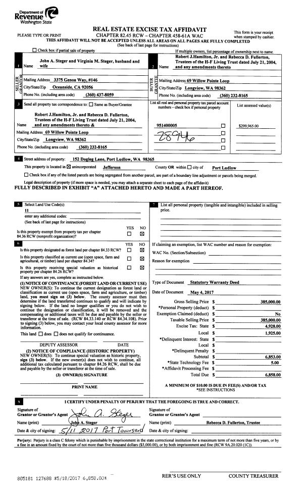 | Mailing Address: | 575 PIONEER DR PORT LUDLOW, WA 98365-9654 | % Ownership: | 100.0000000000% |