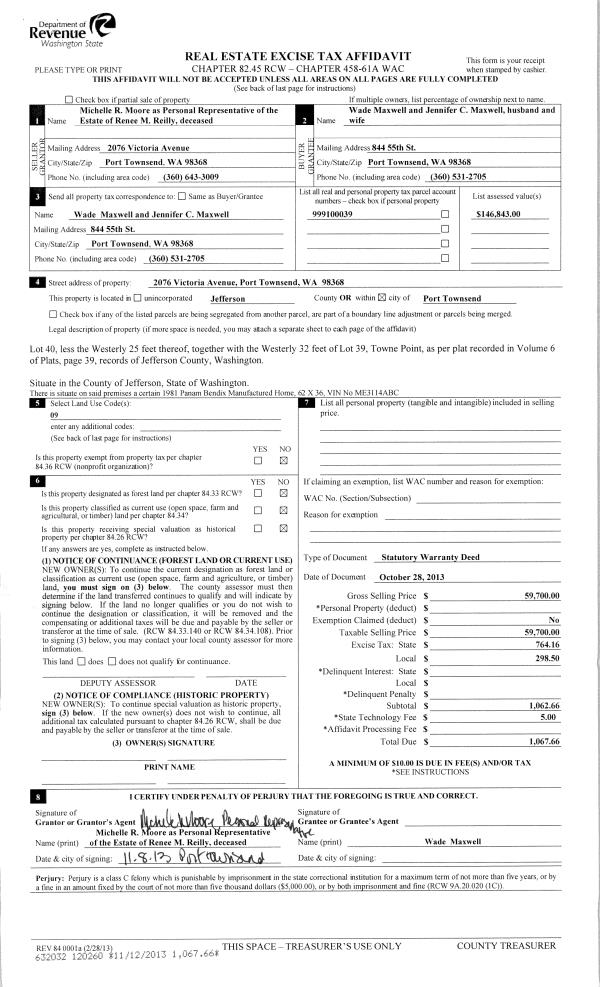 | 3 | 11/20/2013 | QCD | Quit Claim Deed | MICHAEL S BLAIR | BLAIR FAMILY TRUST | | | | 120387 | |