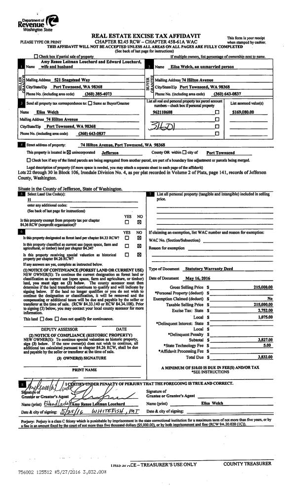 | 2 | 01/25/2005 | SWD | Statutory Warranty Deed | VERSER, CRADDOCK | EXELBY, DONALD L | 0 | 0 | $7,000.00 | 102617 | 0 |