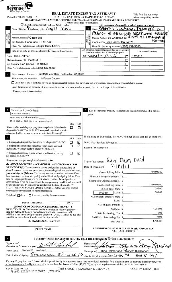 | 3 | 01/27/2021 | QCD | Quit Claim Deed | CURT MARLOW | BERYL G HO MARLOW | | | | 136156 | |