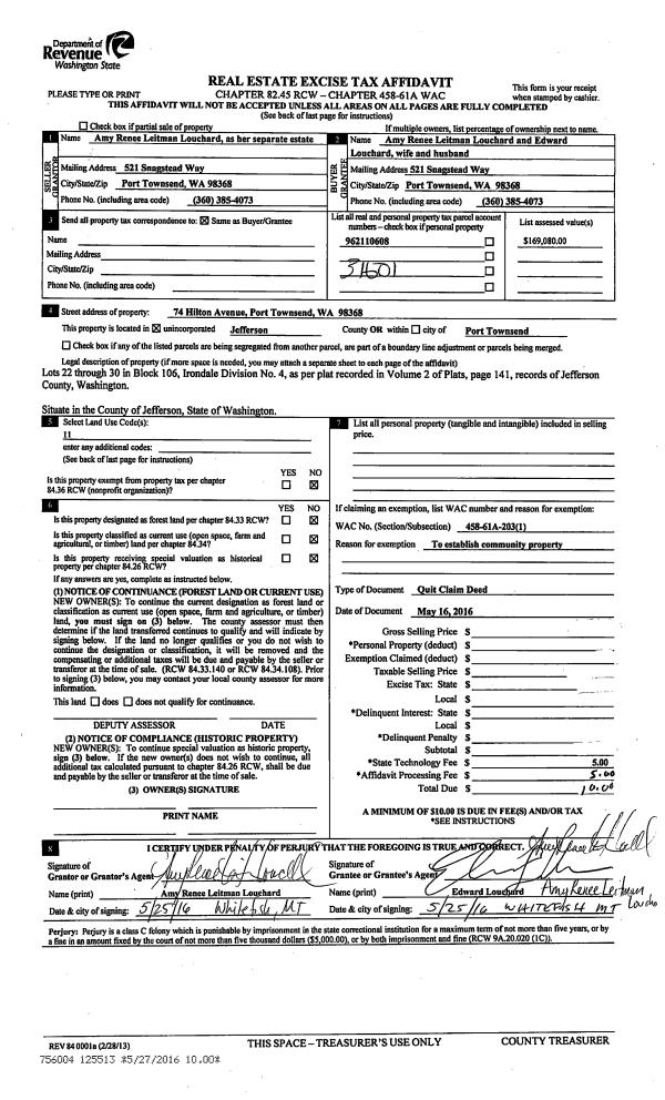 | 1 | 04/10/2017 | QCD | Quit Claim Deed | DONALD L EXELBY | SCOTT ADAMS | | | | 1274551 | |