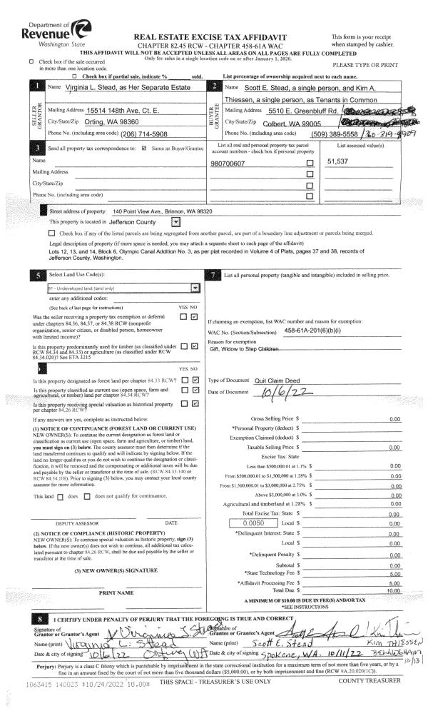 | Mailing Address: | 1073 SOMERVILLE RD CHIMACUM, WA 98325 | % Ownership: | 100.0000000000% |