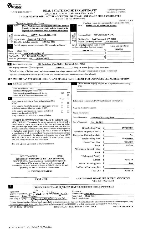 | 1 | 4212-1285S | South Port Townsend 2 Lot Sites | 0.0000 | 0.00 | 0.00 | 0.00 | 1.00 | $101,750 | $0 |
