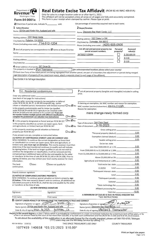 | Mailing Address: | PO BOX 84 PORT HADLOCK, WA 98339-0084 | % Ownership: | 100.0000000000% |