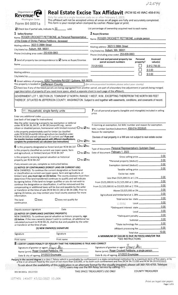 | 1 | 4212-1285S | South Port Townsend 2 Lot Sites | 0.0000 | 0.00 | 0.00 | 0.00 | 1.00 | $93,500 | $0 |