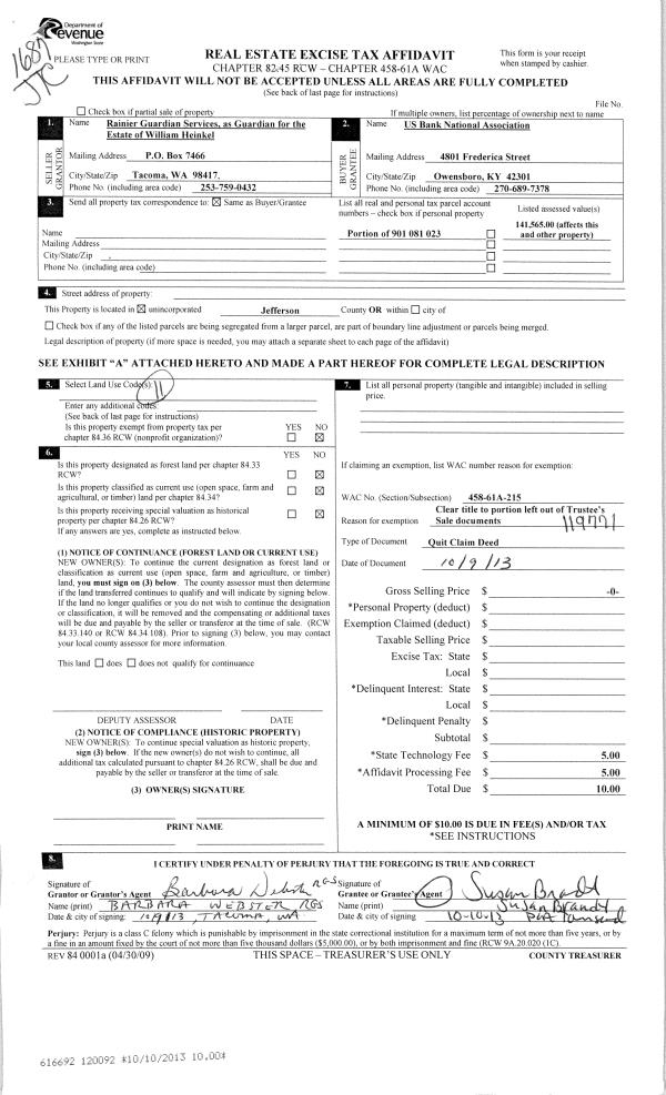 | 3 | 12/22/2014 | TRED | Trustee Deed | NORTHWEST TRUSTEE SERVICES INC | U S BANK NATIONAL ASSOC AS TRUSTEE | | | | 122471 | |