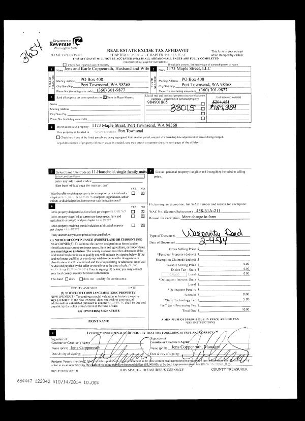 | Mailing Address: | 161 B ST PORT HADLOCK, WA 98339-8509 | % Ownership: | 100.0000000000% |
