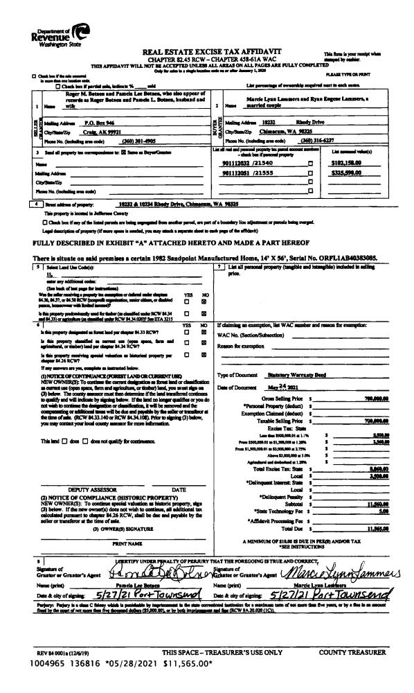 | 1 | 08/11/2021 | SWD | Statutory Warranty Deed | RITA J THACKER-SCHLIEF | RONALD VASENDA | | | $225,000.00 | 137407 | |