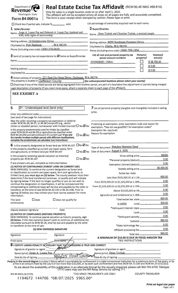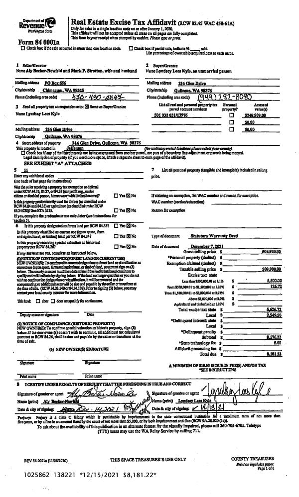 | 2 | 03/16/2004 | SWD | Statutory Warranty Deed | BARNES, TERENCE/JANET | MORSE, GEORGE L/LEONA M | 0 | 0 | $382,500.00 | 99811 | 0 |
