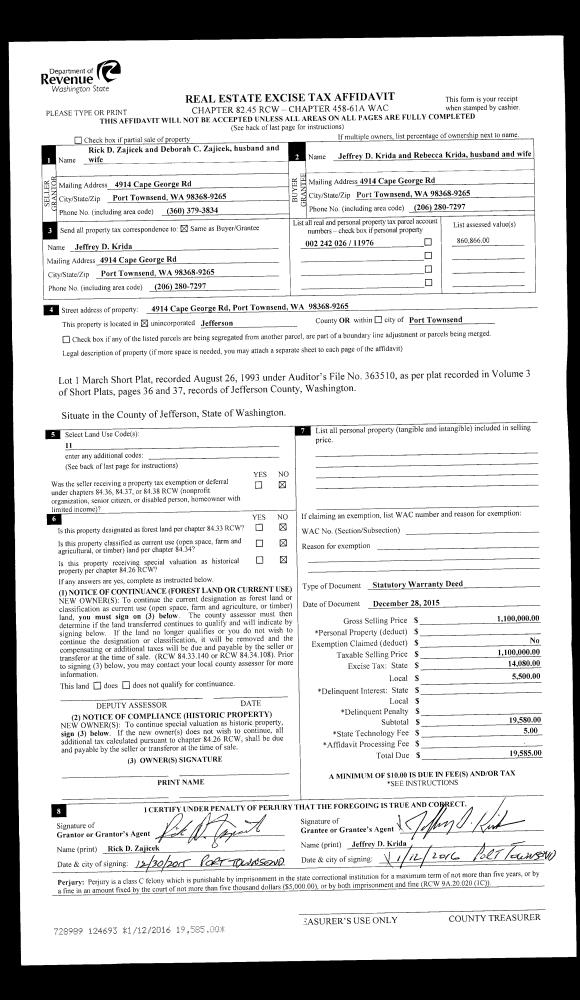 | Mailing Address: | STEVEN D & VIRGINIA L MEACHAM TRUSTEES 621 S POINT RD PORT LUDLOW, WA 98365-9296 | % Ownership: | 100.0000000000% |