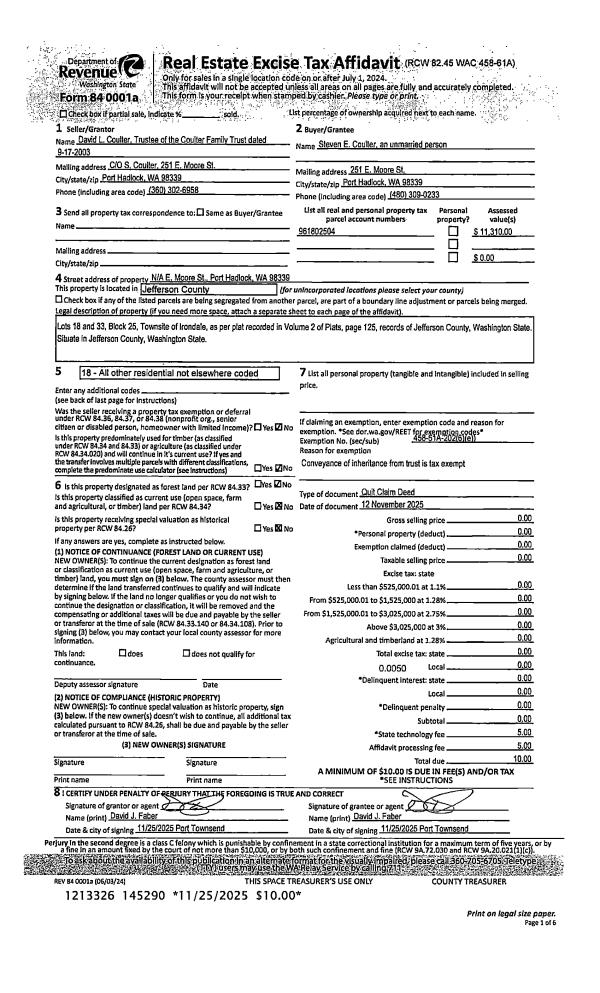 | Mailing Address: | 651 S POINT RD PORT LUDLOW, WA 98365-9296 | % Ownership: | 100.0000000000% |