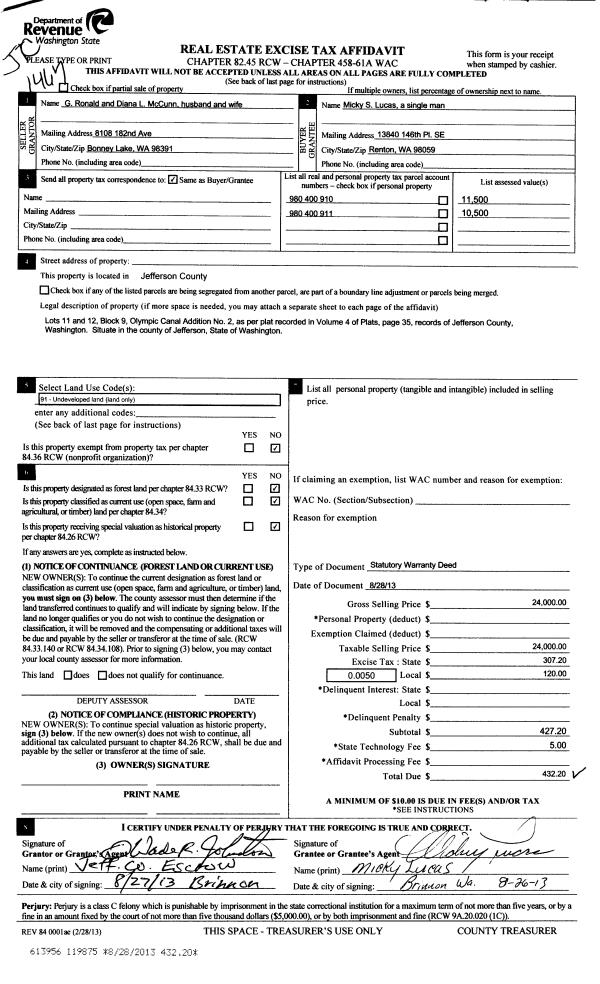 | 2 | 10/28/2014 | SWD | Statutory Warranty Deed | BALLENAS INC | NORTHWIND ARTS CENTER | | | $295,000.00 | 122187 | |