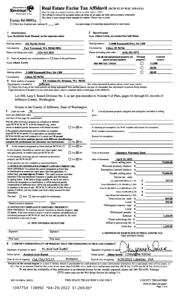 | 2 | 1677A | Terr/Mtn/No View 6-15 Acres | 9.0000 | 392040.00 | 0.00 | 0.00 | 0.00 | $66,825 | $0 |