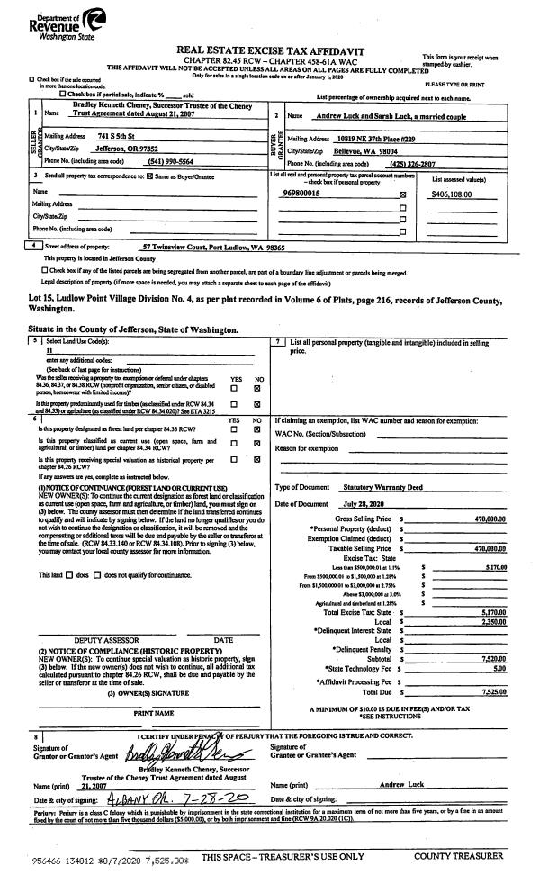 | 3 | 04/24/2020 | SWD | Statutory Warranty Deed | ELINOR JEAN TATHAM | STEPHEN M IMMERMAN | | | $85,500.00 | 134299 | |