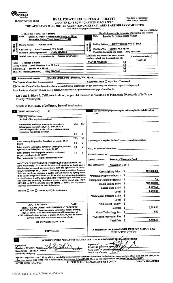 | Mailing Address: | JUDITH M JOHNSON TRUSTEE JOHNSON FAMILY REV TRUST 740 29TH ST PORT TOWNSEND, WA 98368-6138 | % Ownership: | 100.0000000000% |