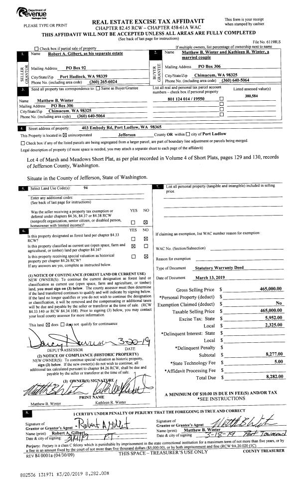 | Mailing Address: | 2906 JACKMAN ST PORT TOWNSEND, WA 98368-6132 | % Ownership: | 100.0000000000% |
