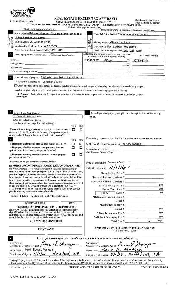 | 3 | 05/16/2005 | SWD | Statutory Warranty Deed | PORT HADLOCK SC LLC | HENRIKSON, KENNETH P | | | $69,900.00 | 103629 | 0 |