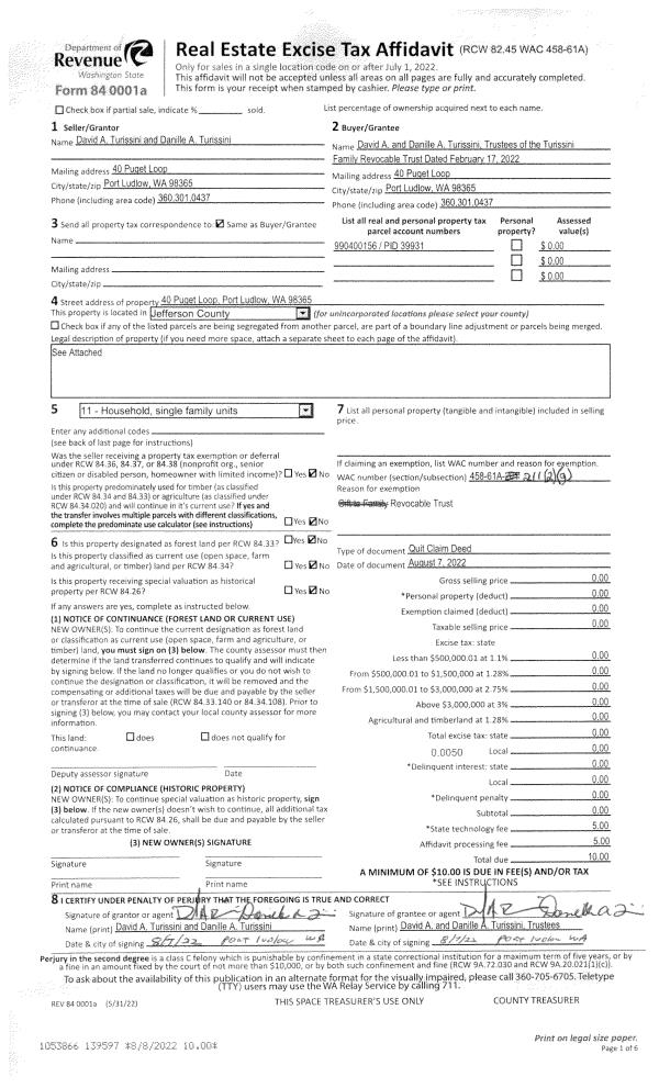 | Mailing Address: | 281 PORT TOWNSEND BAY DR PORT HADLOCK, WA 98339-9793 | % Ownership: | 100.0000000000% |