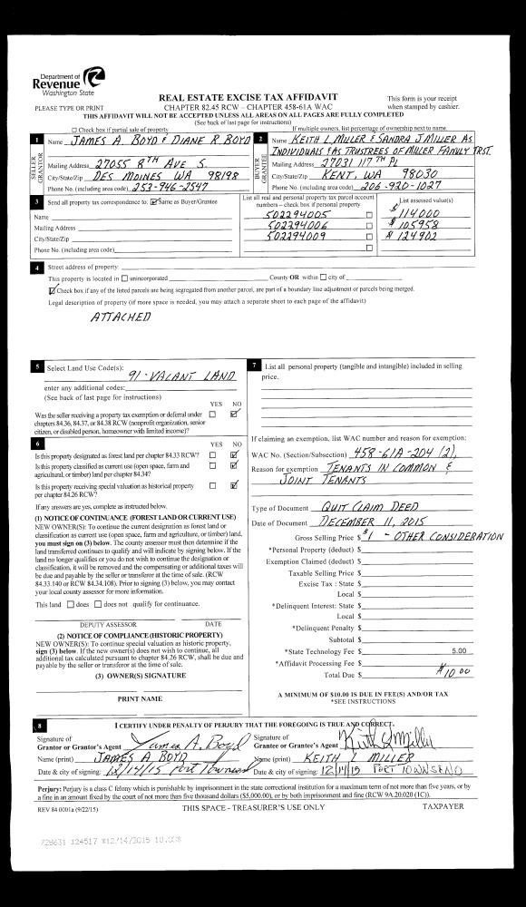 | 4 | 10/03/2016 | QCD | Quit Claim Deed | | | | | | 126939 | |