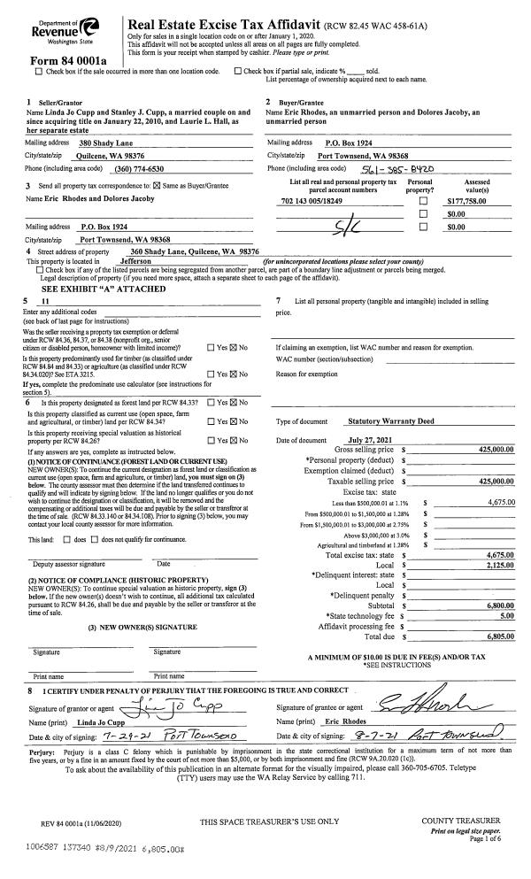 | Mailing Address: | 1033 LAWRENCE ST PORT TOWNSEND, WA 98368-6523 | % Ownership: | 100.0000000000% |