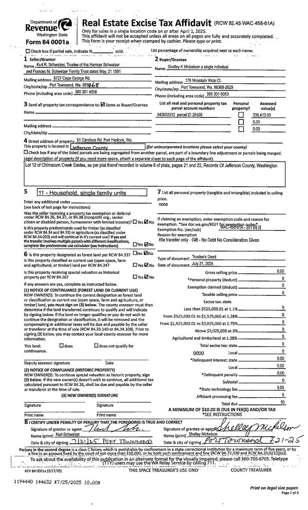 | 1 | 04/29/2022 | SWD | Statutory Warranty Deed | PAUL BOYD | JEFFERSON LAND TRUST | | | $16,300.00 | 139045 | |