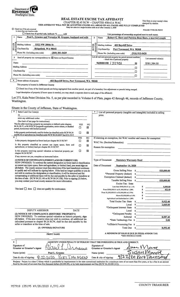 | 1 | 10/13/2025 | SWD | Statutory Warranty Deed | MICHAEL D LEU REVOCABLE TRUST | ERIC & CHERYL GETSINGER | | | $1,200,000.00 | 145114 | |