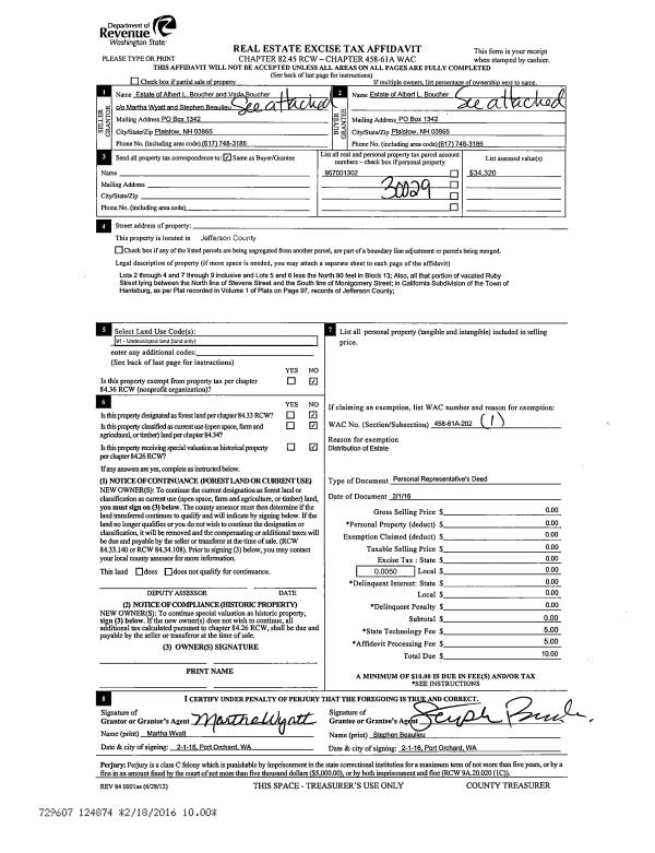 | 2 | 08/29/2016 | SWD | Statutory Warranty Deed | LSPI EXCHANGE CORP | TIMOTHY BANGLE | | | | 126172 | |