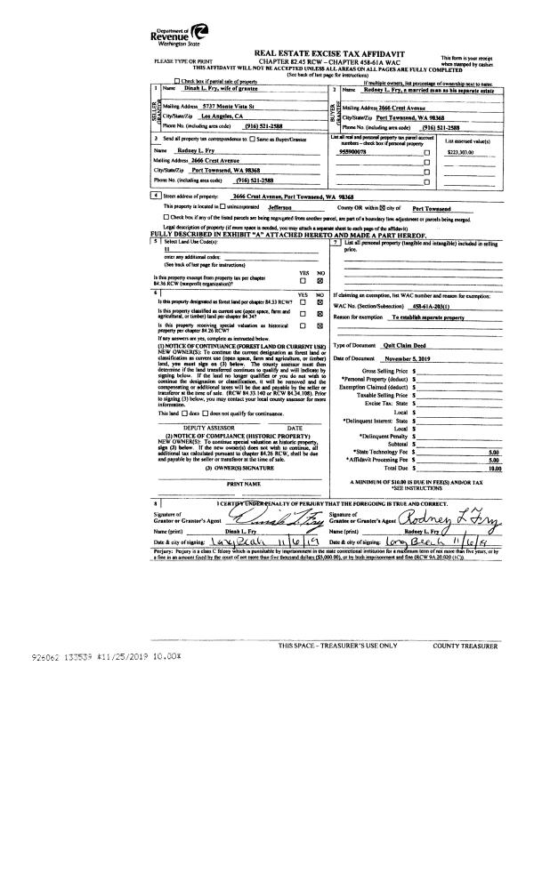 | Mailing Address: | 177 TALA SHORE DR PORT LUDLOW, WA 98365-9259 | % Ownership: | 100.0000000000% |