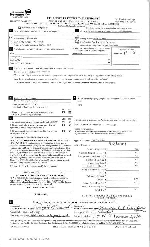 | 3 | 09/12/2012 | QCD | Quit Claim Deed | PAYNTER, SUSAN P | PAYNTER REV LIV TRUST | 0 | 0 | $0.00 | 118145 | 0 |