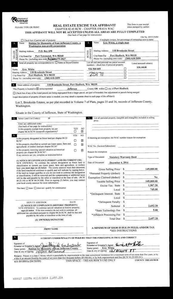 | Mailing Address: | 730 TALA SHORE DR PORT LUDLOW, WA 98365-9264 | % Ownership: | 100.0000000000% |