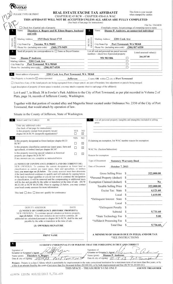 | Mailing Address: | 760 TALA SHORE DR PORT LUDLOW, WA 98365-9264 | % Ownership: | 100.0000000000% |