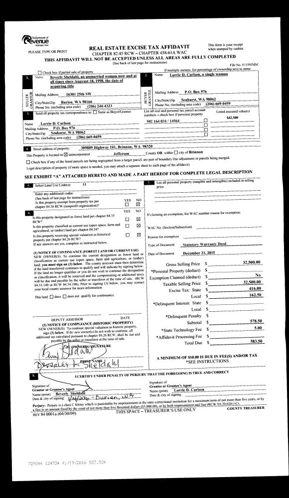 | Mailing Address: | 301 TALA SHORE DR PORT LUDLOW, WA 98365 | % Ownership: | 100.0000000000% |