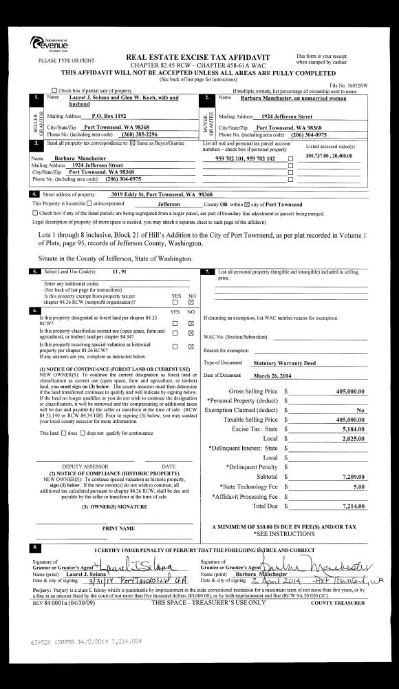 | 4 | 04/03/2015 | BSD | Bargain and Sale Deed | FIRST FEDERAL SAVINGS & LOAN OF PORT ANGELES | DALE E KOENIG | | | $65,610.00 | 122970 | |