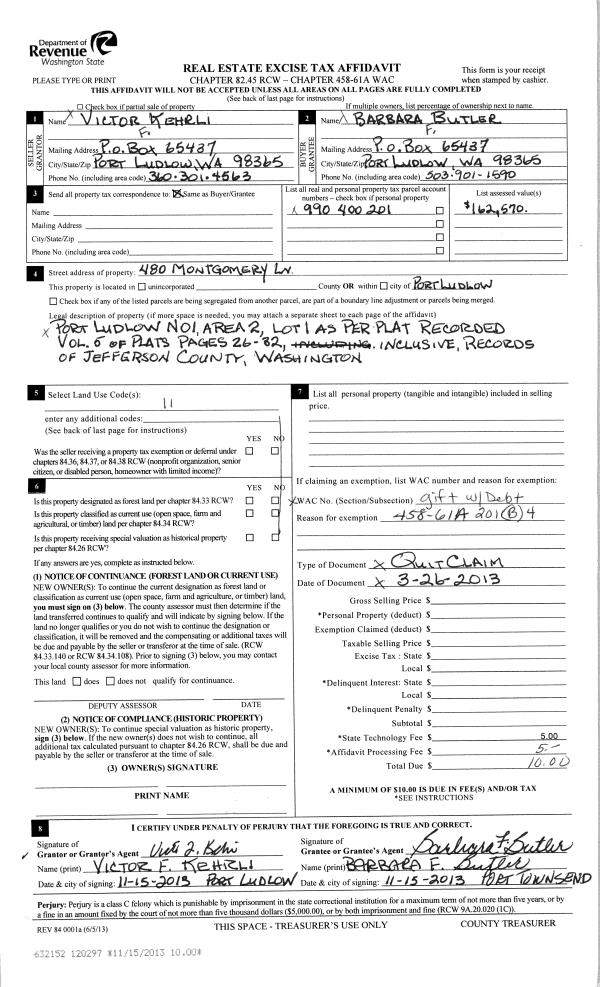 | Mailing Address: | 43 MCKENZIE LN PORT LUDLOW, WA 98365-9233 | % Ownership: | 100.0000000000% |