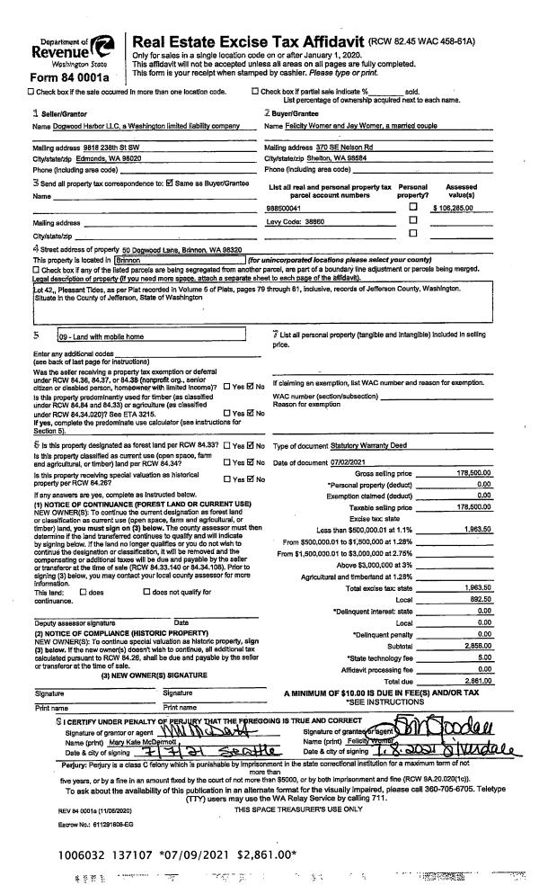 | 7 | 07/01/1997 | SWD | Statutory Warranty Deed | RAK DEVELOPMENT COMPANY | POPE RESOURCES | 0 | 0 | $0.00 | 82267 | 0 |