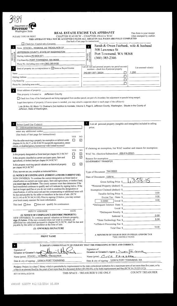 | 4 | 08/20/2001 | QCD | Quit Claim Deed | PORT LUDLOW ASSOCIATES LL | TIMBERTON VILLAGE HOMEOWNER'S | 0 | 0 | $0.00 | 92963 | 0 |
