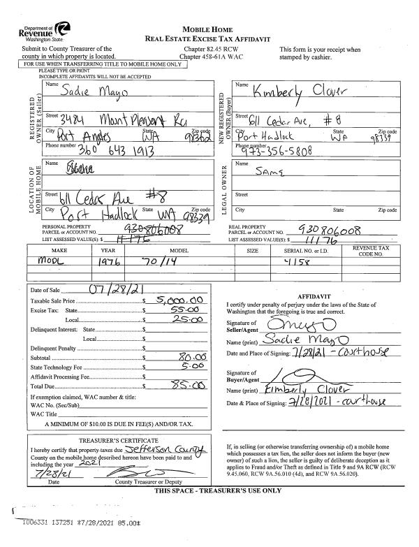 | 1 | 07/06/2021 | SWD | Statutory Warranty Deed | WILLIAM E BUZENBERG | KRISTIN & JORDAN DOVER | | | $441,500.00 | 137116 | |