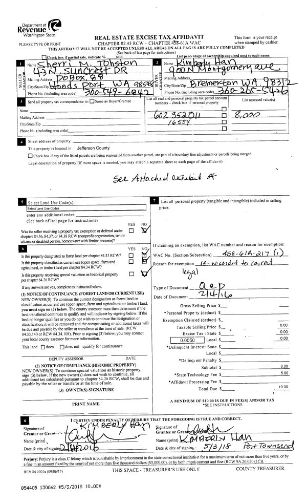 | 4 | 01/28/2020 | QCD | Quit Claim Deed | | | | | | 133911 | |