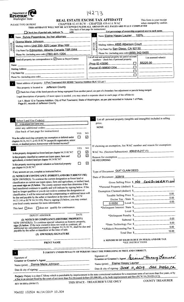 | 5 | 02/28/2014 | QCD | Quit Claim Deed | RUSSEL J TRASK TRUSTEE | TERMINATION POINT PROPERTIES LLC | | | | 120806 | |