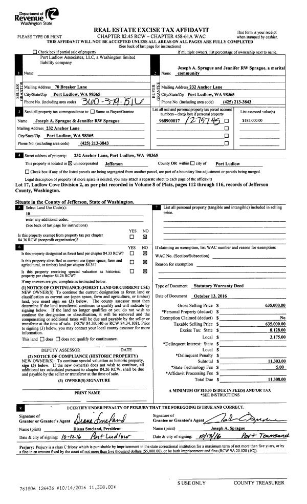 | Mailing Address: | M S LONG/B P LONG A C LONG/A B COOPER 5101 27TH AVE W EVERETT, WA 98203-1436 | % Ownership: | 100.0000000000% |