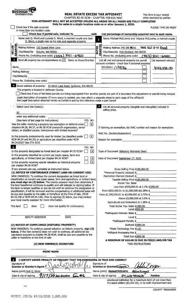 | 3 | 03/19/2021 | SWD | Statutory Warranty Deed | TERMINATION POINT PROPERTIES LLC | SHAUN & AMY DYRENG | | | $72,000.00 | 136388 | |