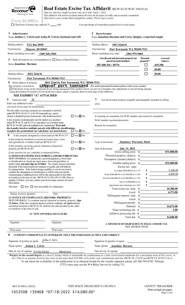 | 1 | 02/07/2022 | SWD | Statutory Warranty Deed | TERMINATION POINT PROPERTIES LLC | JAMES B MORRISON FAMILY LLC | | | $130,000.00 | 138561 | |
