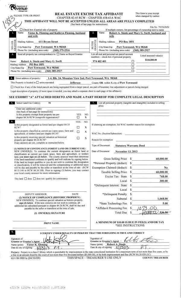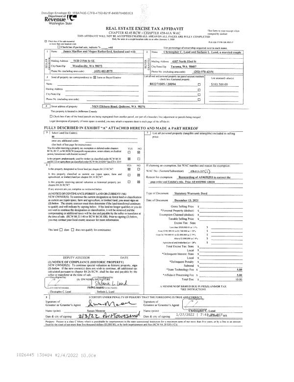 | 2 | 08/27/2021 | SWD | Statutory Warranty Deed | TERMINATION POINT PROPERTIES LLC | DAVID M P & ARCELIA ELLIS | | | | 138538 | |