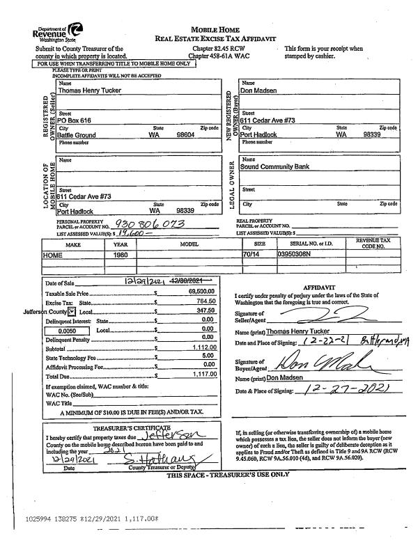 | Mailing Address: | DAVID W H TIPTON JTWROS 43 SEA BREEZE LN PORT LUDLOW, WA 98365-9585 | % Ownership: | 100.0000000000% |