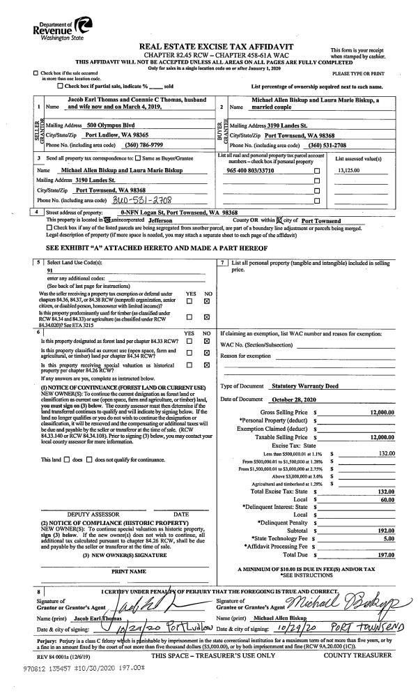 | 7 | 11/24/1992 | SWD | Statutory Warranty Deed | POPE RESOURCES | VILLAGE HOMES INC | 0 | 0 | $7,812.00 | 70301 | 0 |