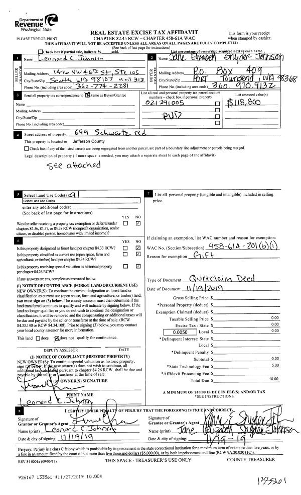 | Mailing Address: | 64 SEA VISTA TERR PORT LUDLOW, WA 98365-9584 | % Ownership: | 100.0000000000% |