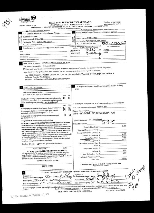 | 3 | 07/09/1998 | SWD | Statutory Warranty Deed | POPE RESOURCES | OLSEN, DONALD C/GLADYCE M | 0 | 0 | $210,000.00 | 84886 | 0 |